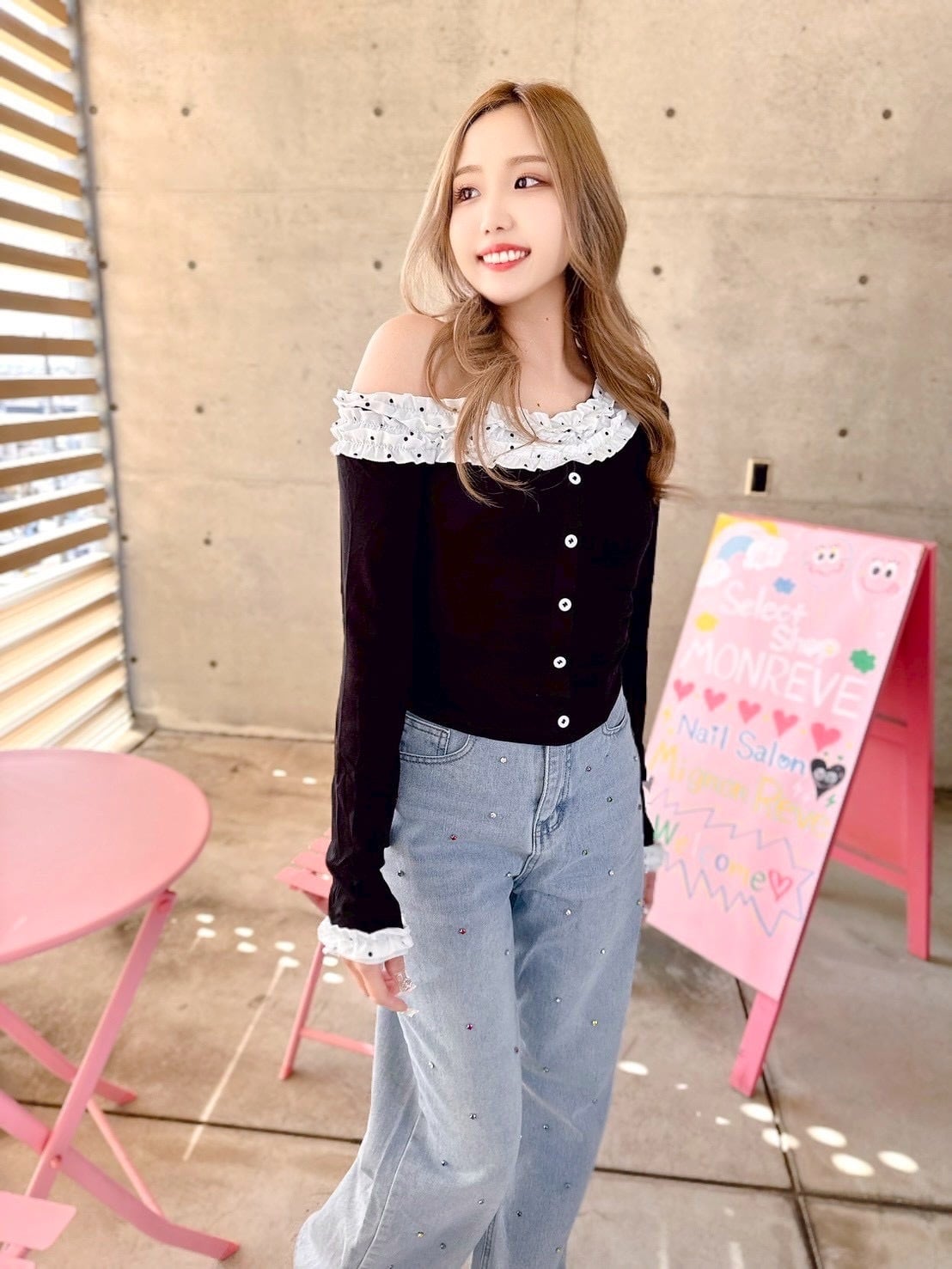 フリルで可愛さも表現しつつ大人っぽいコーデが