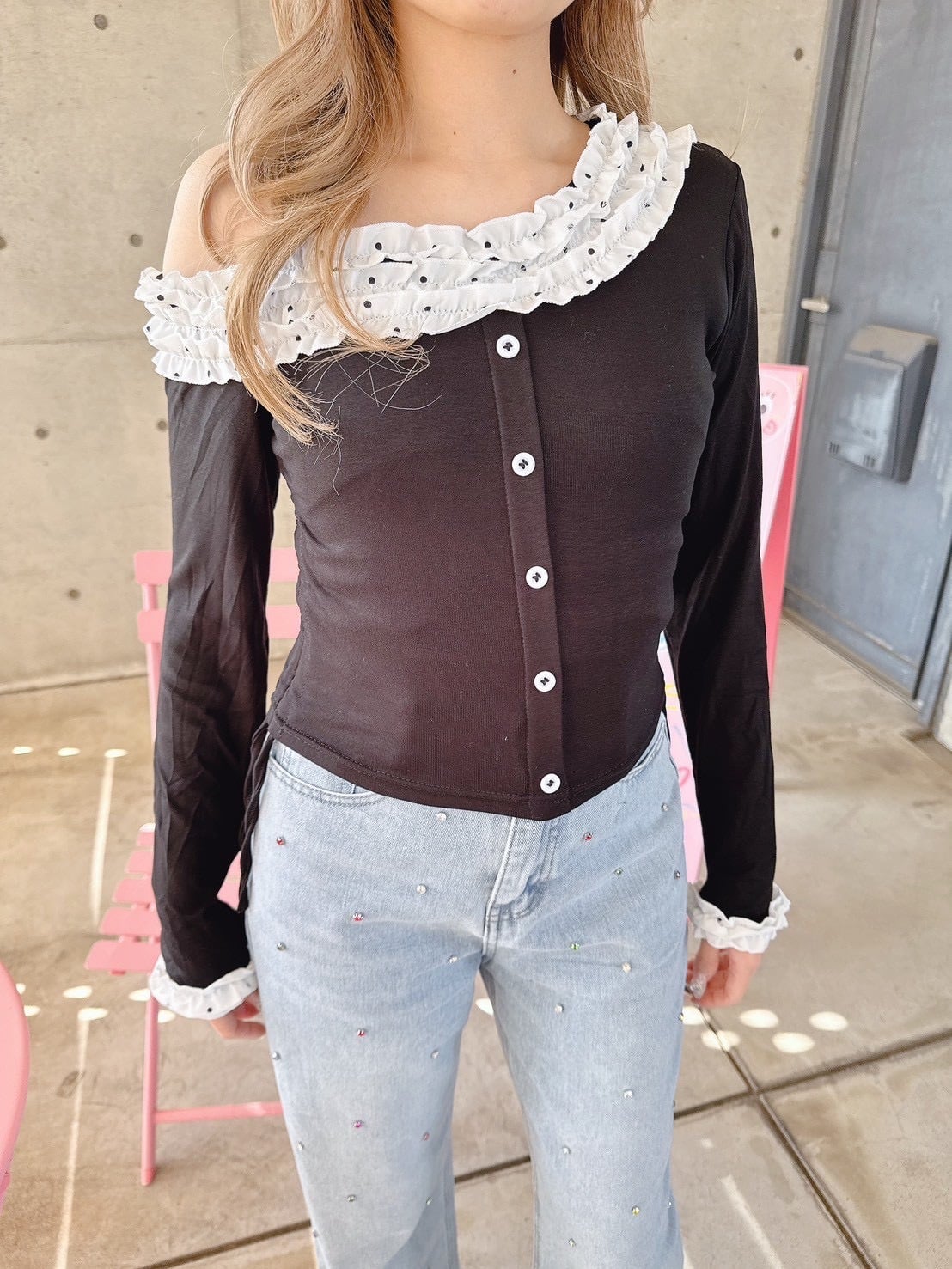 オフショルフリルトップス♡韓国/レディースファッション/可愛い/おしゃれ/ラフ/可愛い/カジュアル/フリル/(3-394)