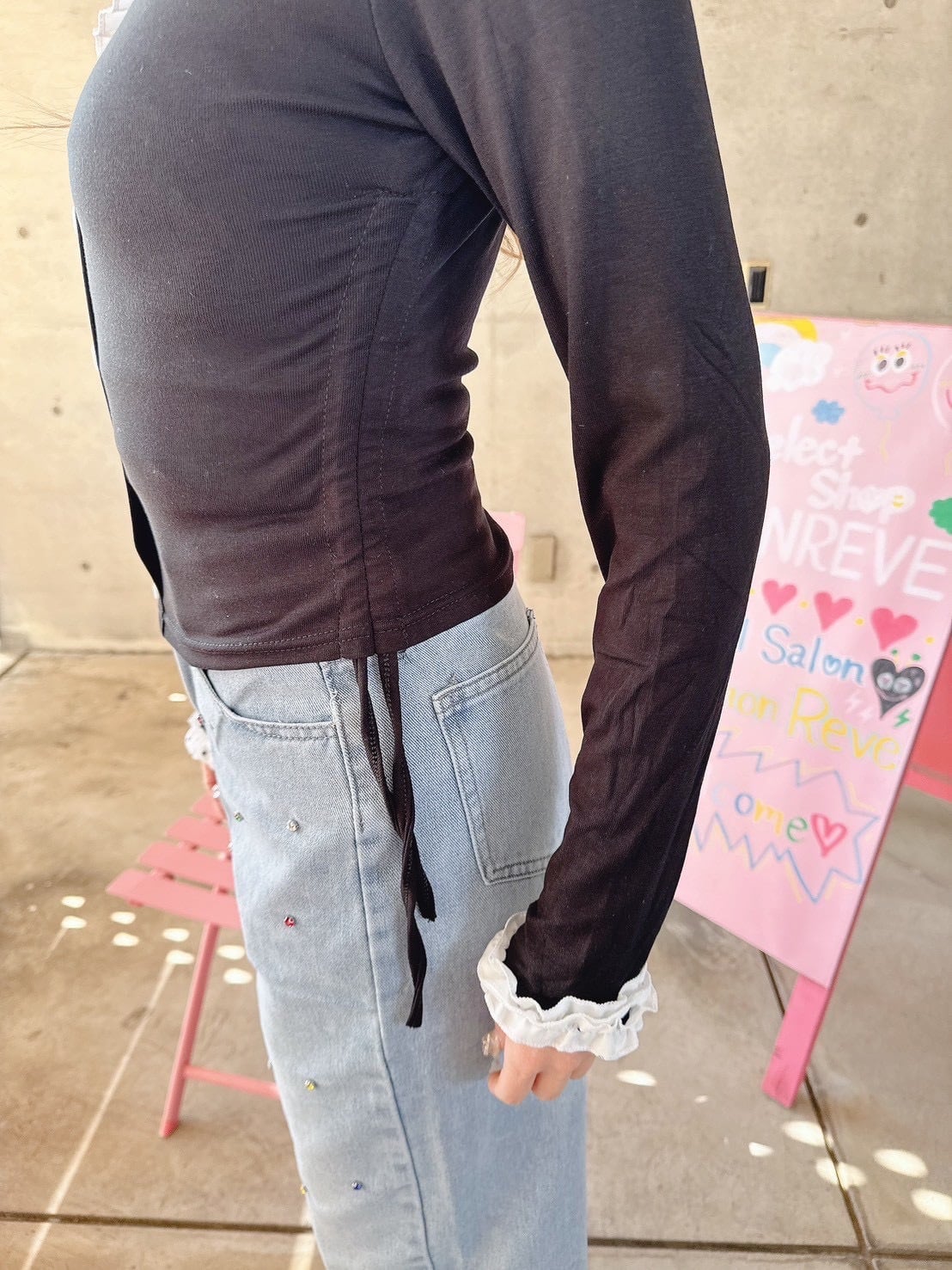 袖丈が長めなのと、ウエスト部分に紐がついてて