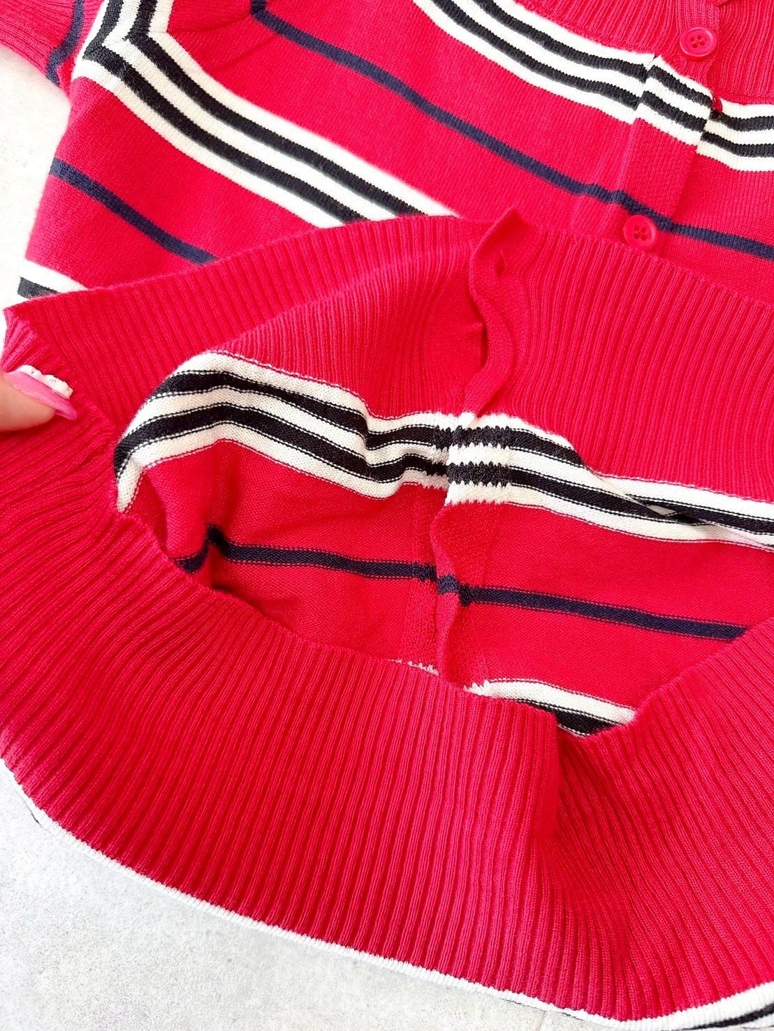 レッドボーダーニットトップス♡韓国/レディースファッション/可愛い/おしゃれ/ラフ/可愛い/カジュアル/ニット/(3-395)