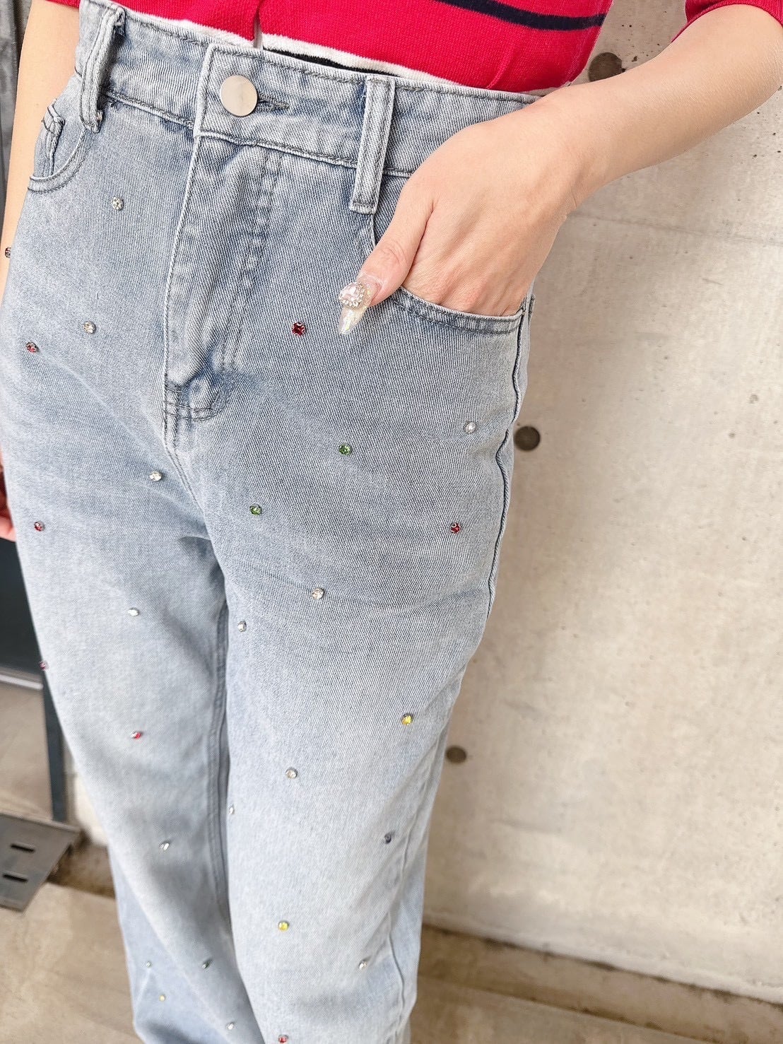 カラフルビジューデニム♡韓国/レディースファッション/可愛い/おしゃれ/ラフ/可愛い/カジュアル/キラキラ/(5-211)