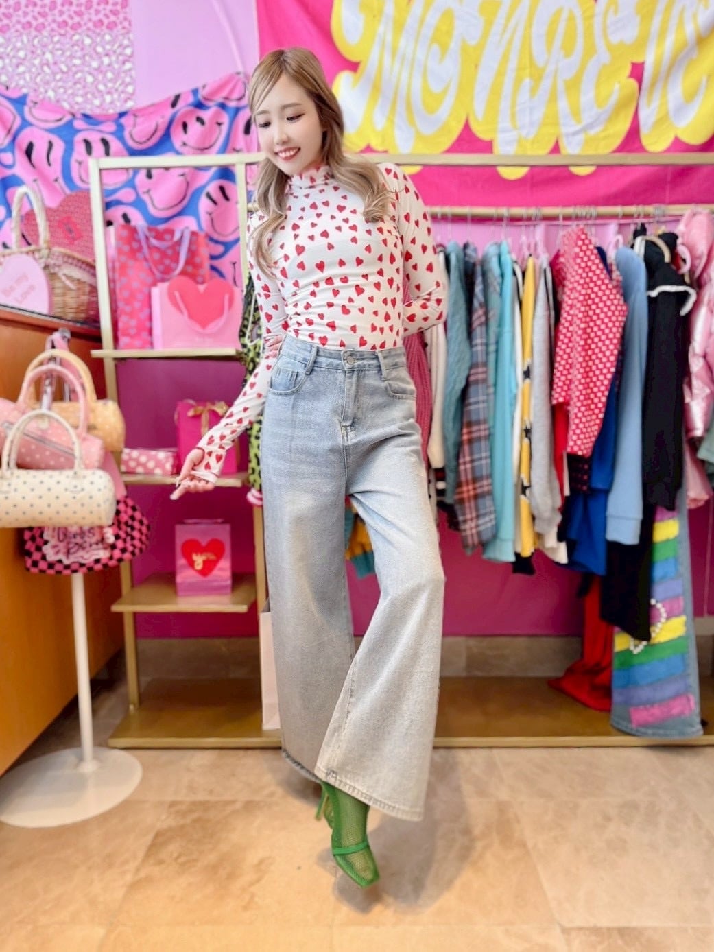 ハートデザイントップス♡韓国/レディースファッション/可愛い/おしゃれ/ラフ/可愛い/カジュアル/ハート/(3-386)