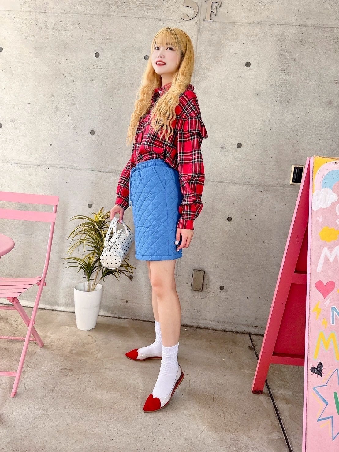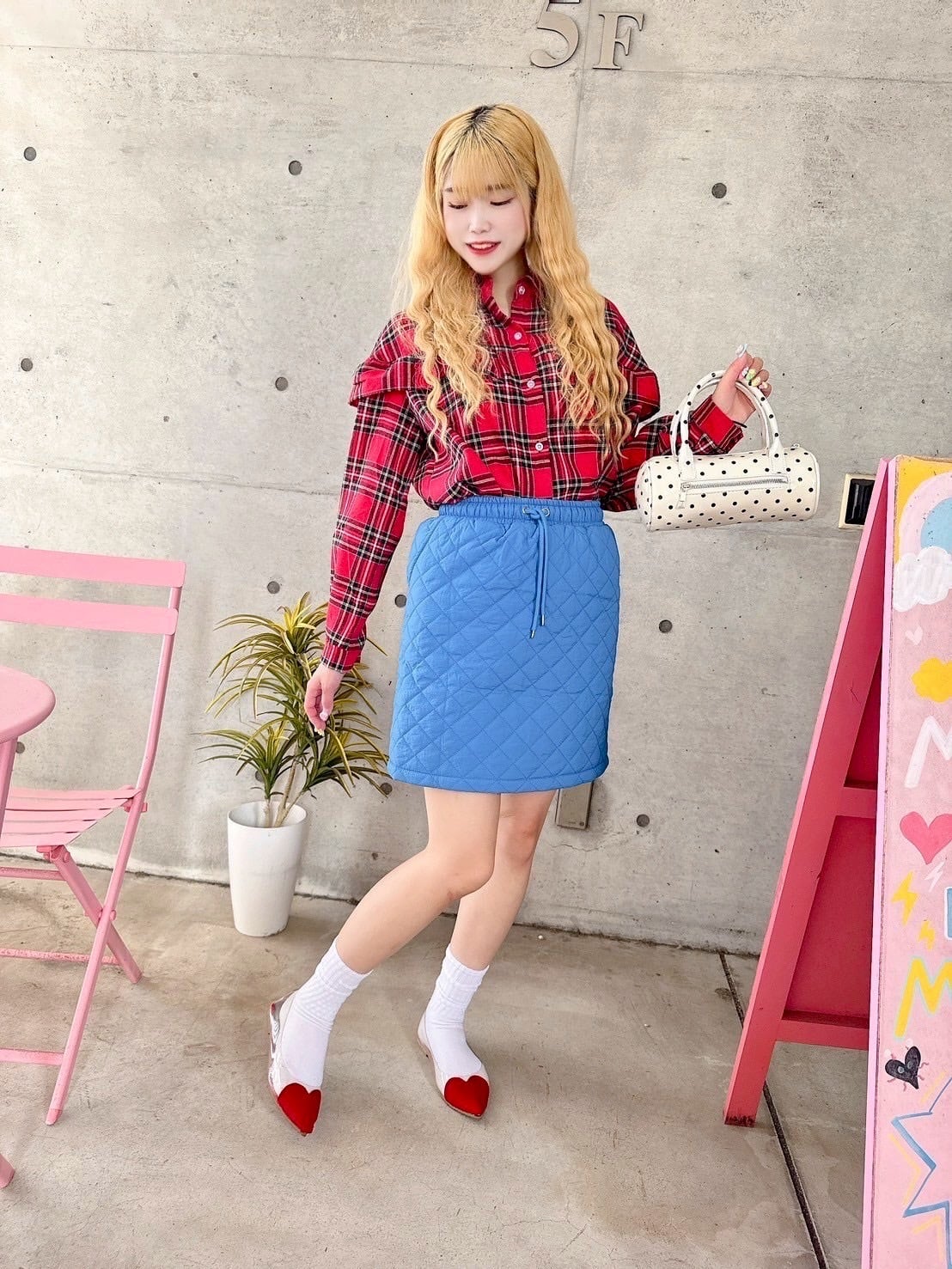 Blueキルティングスカート/韓国/レディースファッション/ミニスカート/タイト/可愛い/春/秋/冬(7-026)