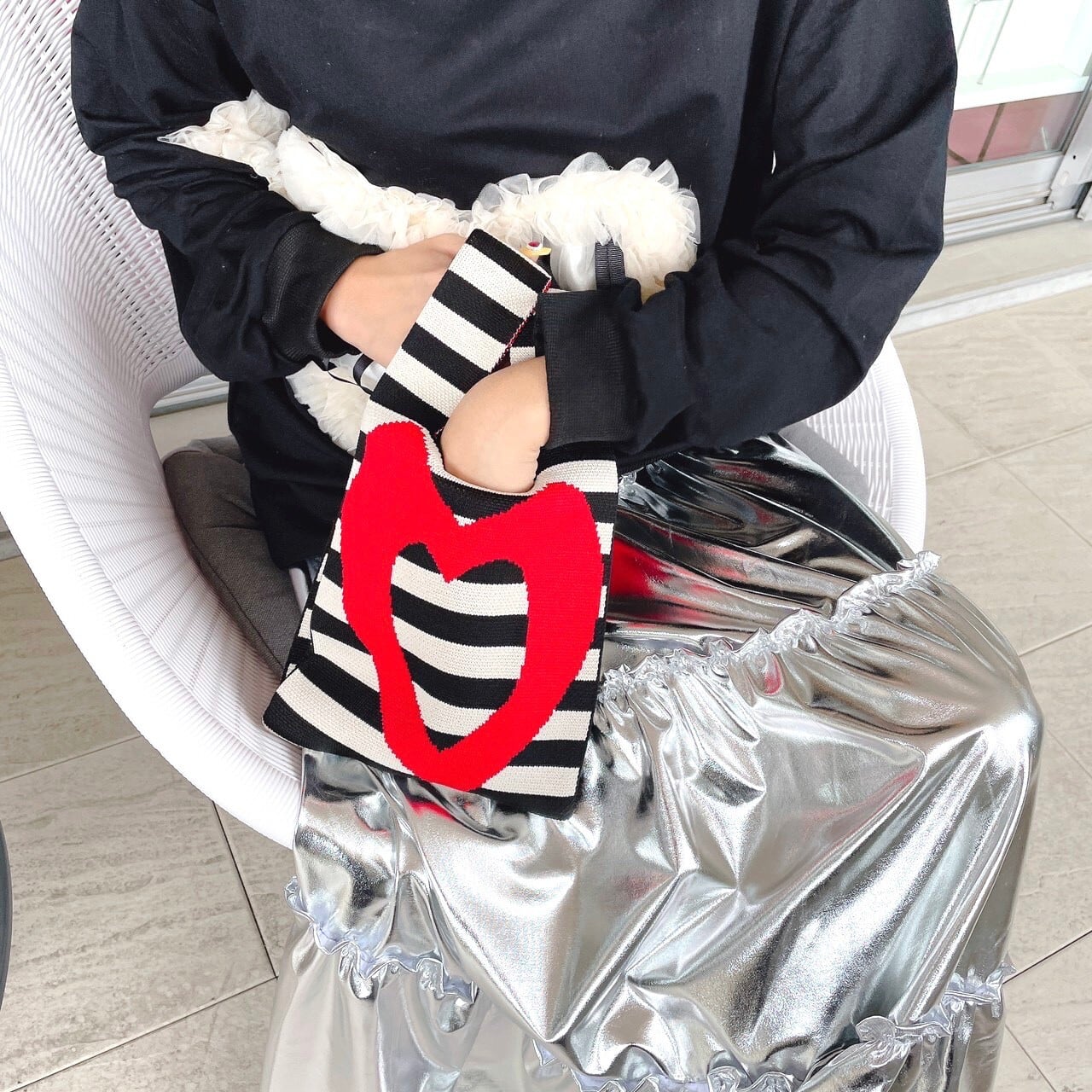 ハートボーダーニットバッグ韓国ファッション/レディースファッション/かばん/ミニバッグ(9-085)
