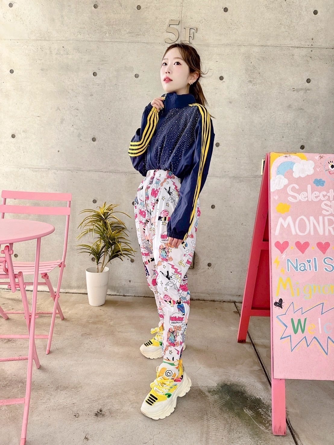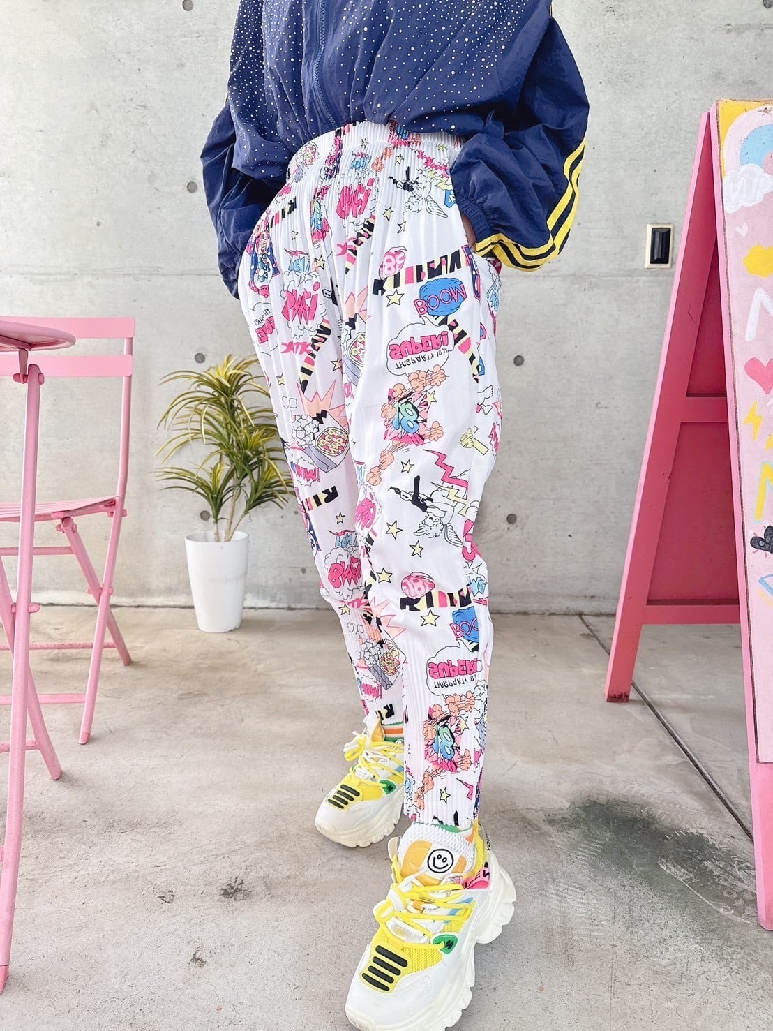 カラフルロゴプリーツジョガーパンツ/韓国/レディースファッション/可愛い/ラフ/派手/個性的/春/カジュアル/夏/秋(5‐153)