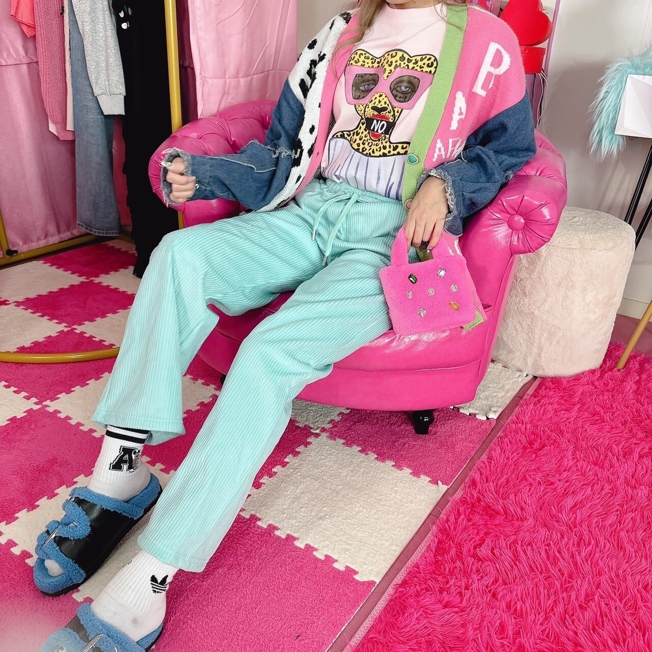 Blueベロアカジュアルパンツ/韓国/レディースファッション/可愛い/おしゃれ/ラフ/女子/カジュアル/秋/冬(5‐156)