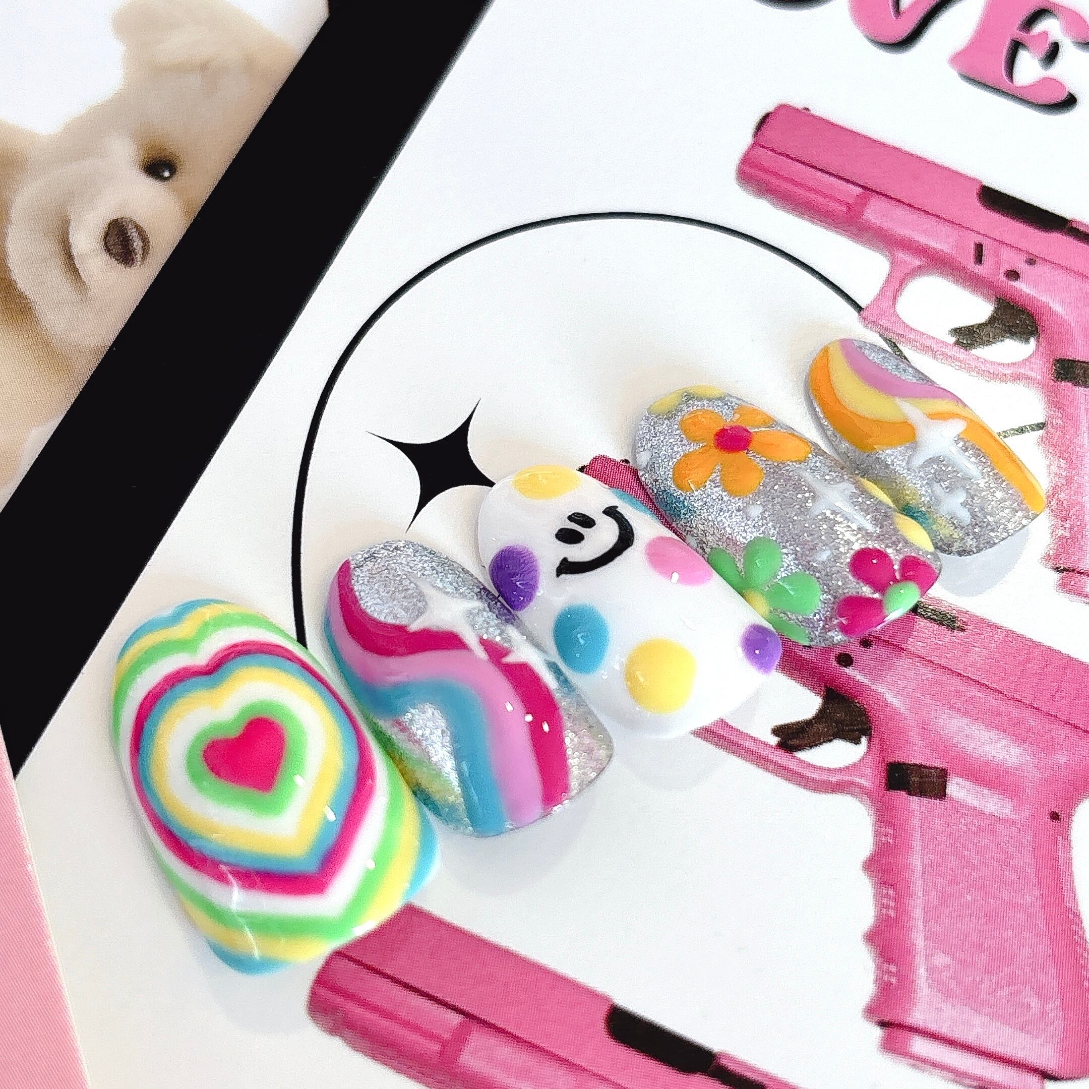 【送料無料】ネイルチップNo.112♡ネイル/韓国/アート/パーツ/カラフル/pop