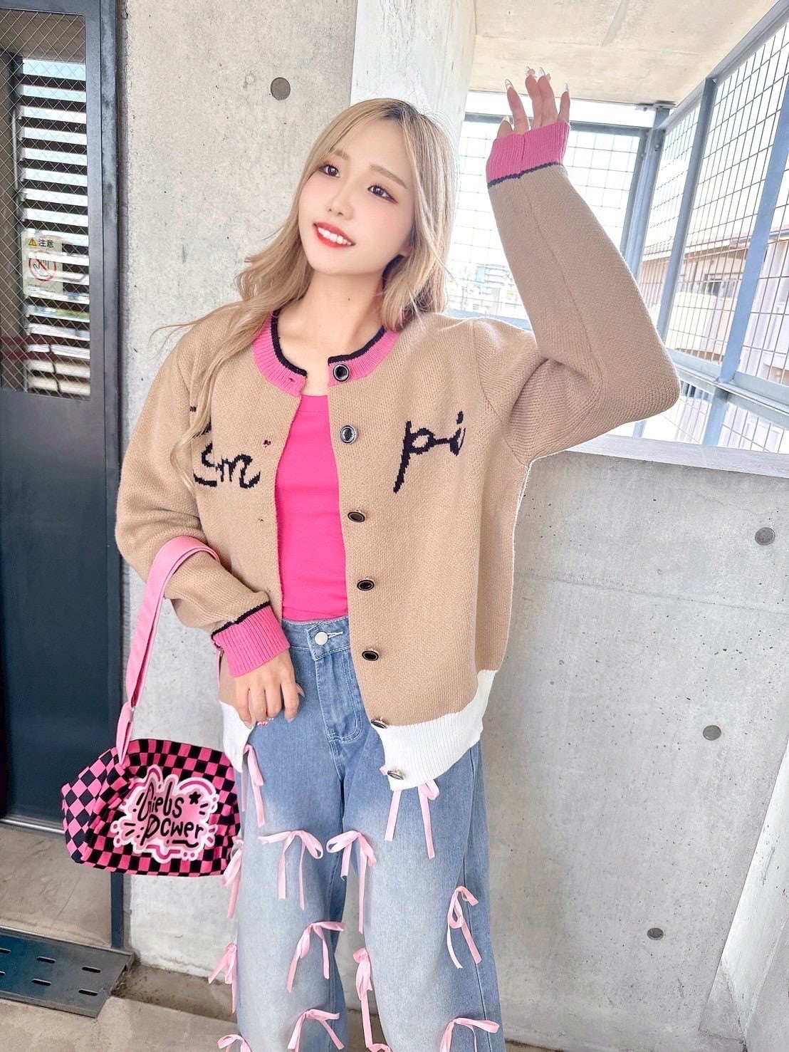 Pinkカジュアルニットカーディガン/韓国/レディースファッション/おしゃれ/ラフ/カジュアル/女子/ベージュ/可愛い/春/秋/冬(1-166)