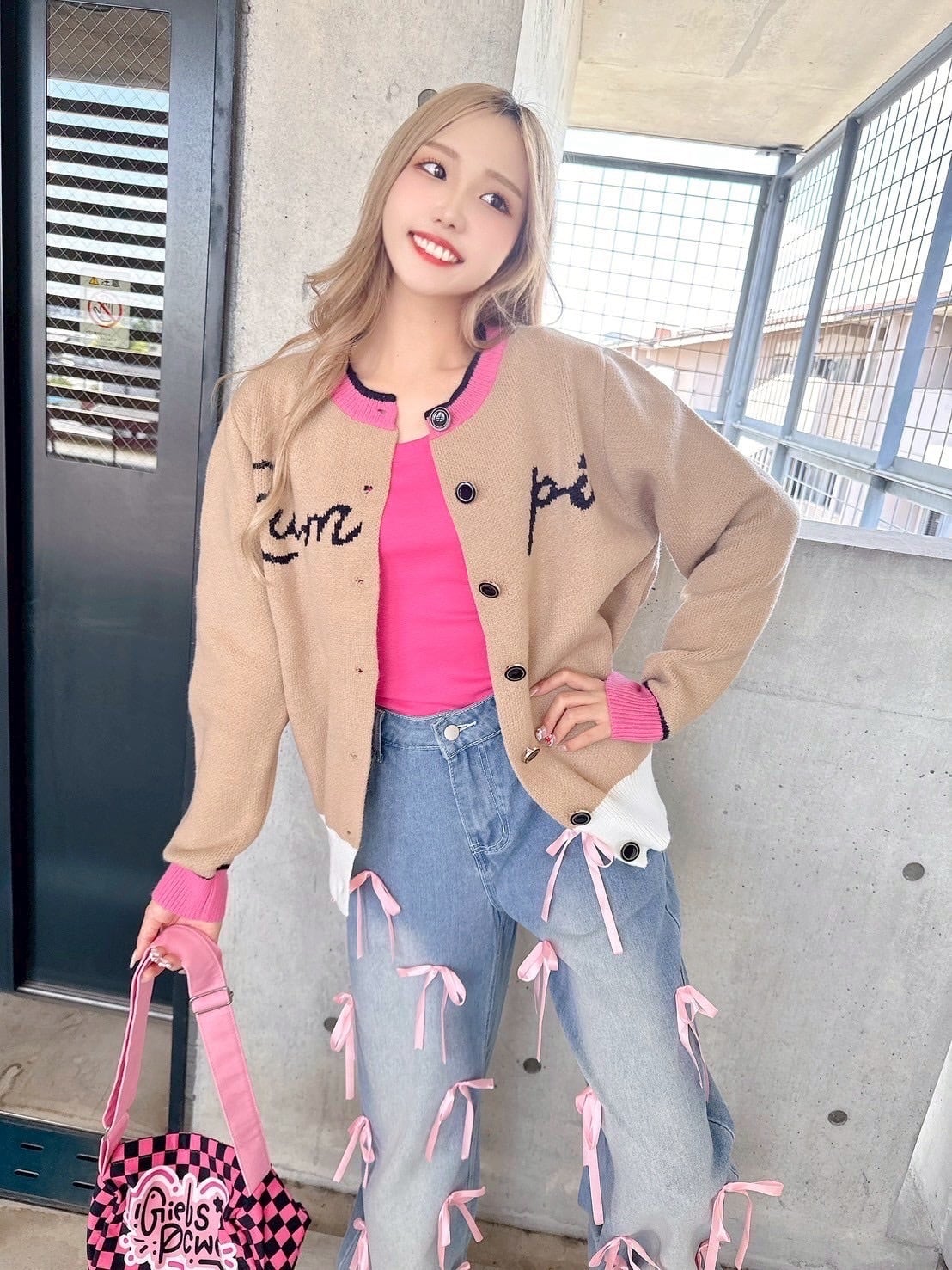 春秋冬と3シーズンで活躍する可愛いPinkカジュアルニットカーディガン♡